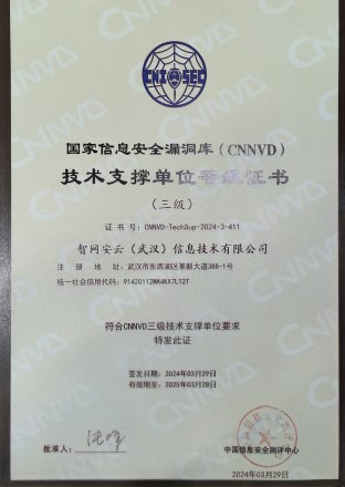 国家信息安全漏洞库(CNNVD)技术支撑单位等级证书(三级)