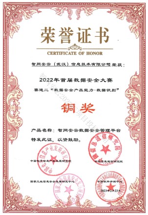 2022年首届数据安全大赛赛道二数据安全产品能力-数据识别铜奖